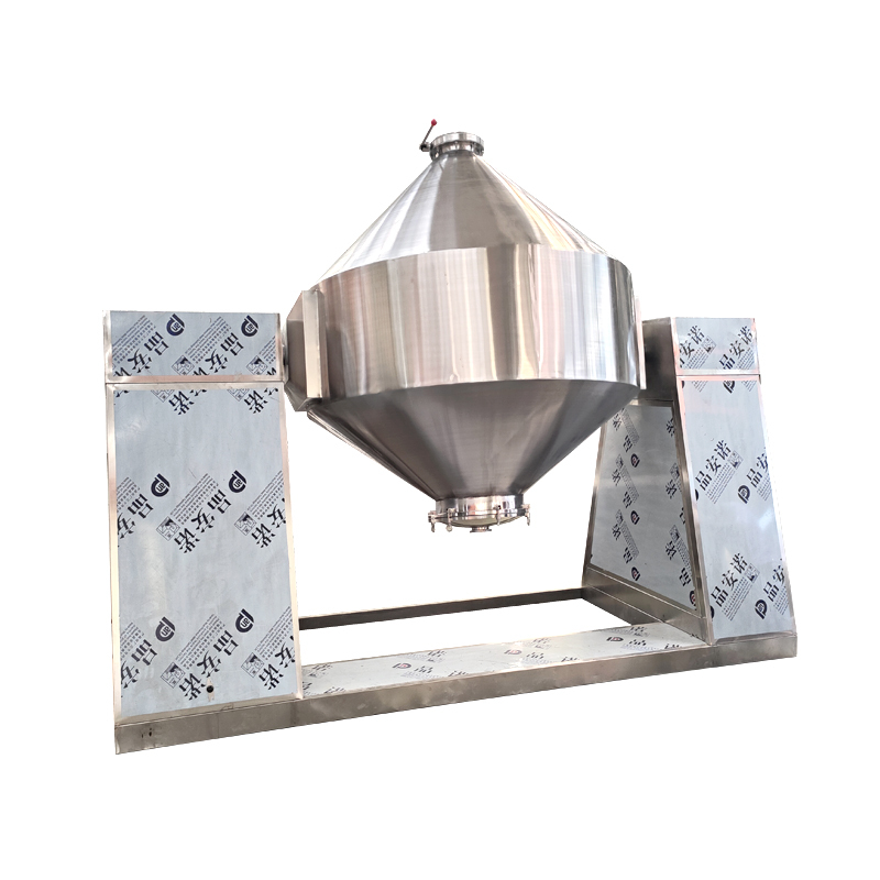 Le mélangeur à double cône est un équipement de mélange de poudre utilisé dans les industries pharmaceutiques, chimiques et autres. Il est composé de coquilles coniques symétriques reliées par un axe central pour former une forme "double". Pendant le fonctionnement, le moteur entraîne le cylindre pour tourner autour d'un axe horizontal. Sous l'influence de la gravité et de la force centrifuge, les matériaux tombent et se propagent, réalisant un mélange uniforme. Il a une efficacité de mélange élevée, des résidus faibles, une forte adaptabilité et sa paroi intérieure est polie pour réduire l'adhésion. Certains modèles peuvent être équipés d'un système à vide, et il convient pour mélanger les poudres sèches, les granules, etc.