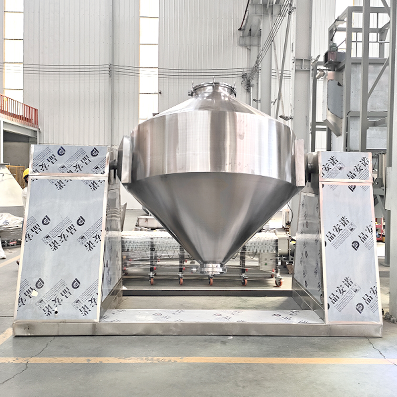 Le mélangeur à double cône est un équipement de mélange de poudre efficace dont le corps principal est composé de deux cylindres coniques reliés entre eux et entraîné par un moteur pour tourner autour d'un axe horizontal.Sa conception d'étanchéité réduit efficacement les fuites de poussière et est largement utilisée pour mélanger des poudres et des matériaux granulaires dans des industries telles que la médecineLe choix de la capacité de l'équipement est flexible, l'opération est simple, l'uniformité de mélange est élevée, la quantité de matière résiduelle est faible,et la conception structurelle est pratique pour le nettoyage et l'entretien, répondant aux deux exigences d'une efficacité de mélange élevée et d'une grande propreté dans la production par lots.