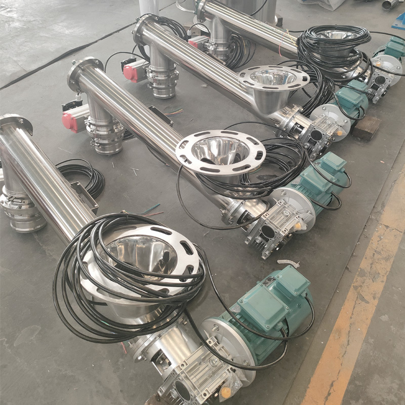 2. La vis d'Archimède horizontale avec 3 sorties, chaque sortie est équipée d'une vanne papillon, lorsque vous avez besoin de remplir un grand sac, il suffit d'ouvrir cette vanne papillon