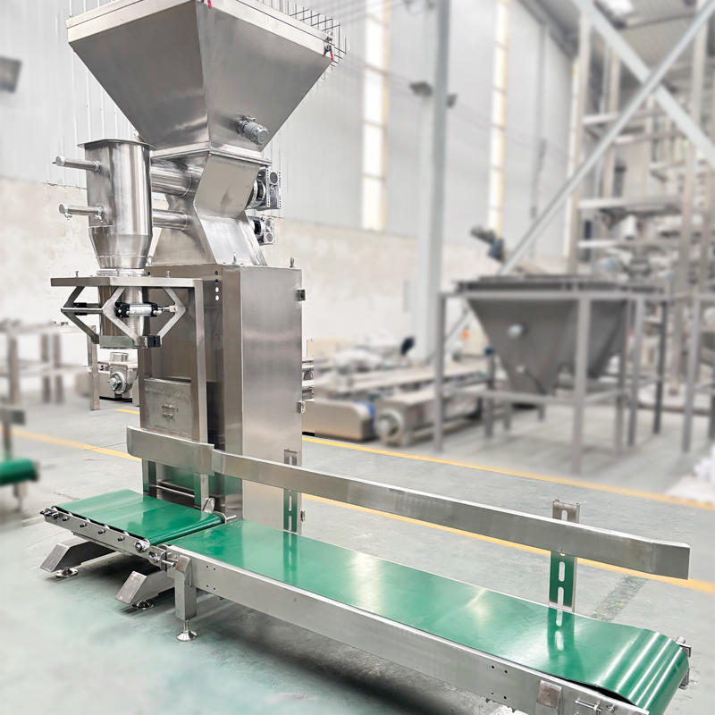 After filling is completed, the bag clamping mechanism releases, and the bagged finished products are transported by a conveyor belt to the sealing station, where a secure seal is achieved through heat sealing or sewing, all under the intelligent control of the PLC system, which is efficient and coherent.