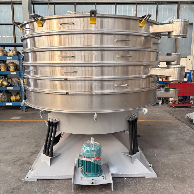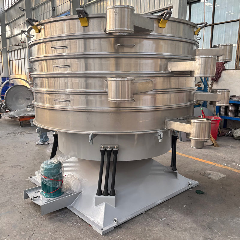 Le tamis vibrant est un équipement de criblage industriel efficace et précis. Son principal avantage découle du principe de mouvement unique qu'il simule le criblage manuel humain. Il ne repose pas sur une vibration verticale intense, mais utilise plutôt une oscillation circulaire horizontale douce et approximative pour traiter les matériaux. Pendant le fonctionnement, les matériaux se répartissent uniformément sur le tamis, couche par couche, et se déplacent lentement le long d'une trajectoire en spirale vers le bord. Au cours de ce processus, les fines particules traversent continuellement le tamis, tandis que les grosses particules sortent finalement du bord. Ce mode de mouvement doux est particulièrement adapté aux matériaux fragiles, fins, collants ou en forme de feuilles, protégeant efficacement leur intégrité. En même temps, avec sa haute précision, son grand rendement et son faible bruit, il est devenu un choix idéal pour le criblage de haute qualité dans les industries chimique, alimentaire et pharmaceutique.