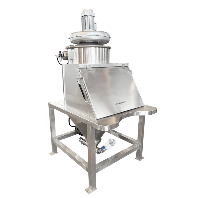 Après le démarrage, le ventilateur intégré génère un flux d'air à pression négative stable à l'intérieur de la chambre d'alimentation, maintenant la pression d'air interne légèrement inférieure à l'environnement extérieur. Cette différence de pression forme une barrière invisible, supprimant et dirigeant efficacement la poussière générée pendant l'alimentation, l'empêchant de s'échapper. La poussière volante est rapidement aspirée dans l'unité de filtration à haute efficacité par le flux d'air, tandis que l'air propre est soit rejeté, soit recyclé. La poussière capturée est collectée et traitée par le système de nettoyage automatique, réalisant ainsi un processus d'alimentation entièrement sans poussière et sûr.